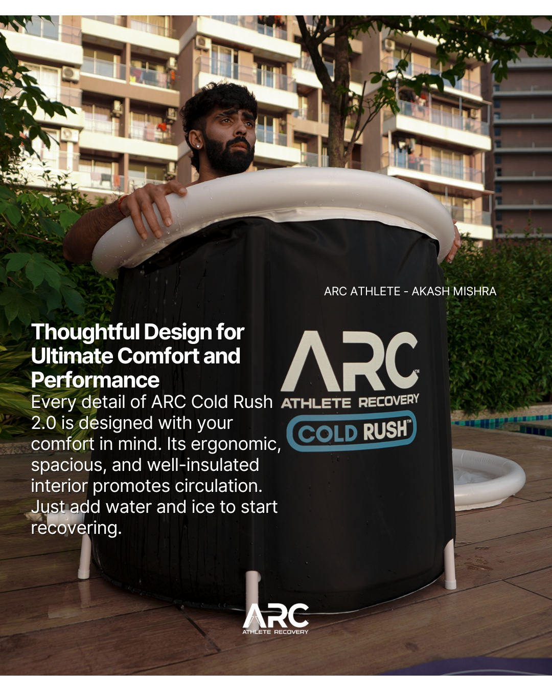 Warning: The ARC - Athlete Recovery (COLD RUSH) portable ice bath is intended for use as a recovery tool for athletes and fitness enthusiasts. While this product may provide therapeutic benefits, it is not intended to diagnose, treat, cure, or prevent any medical conditions.
