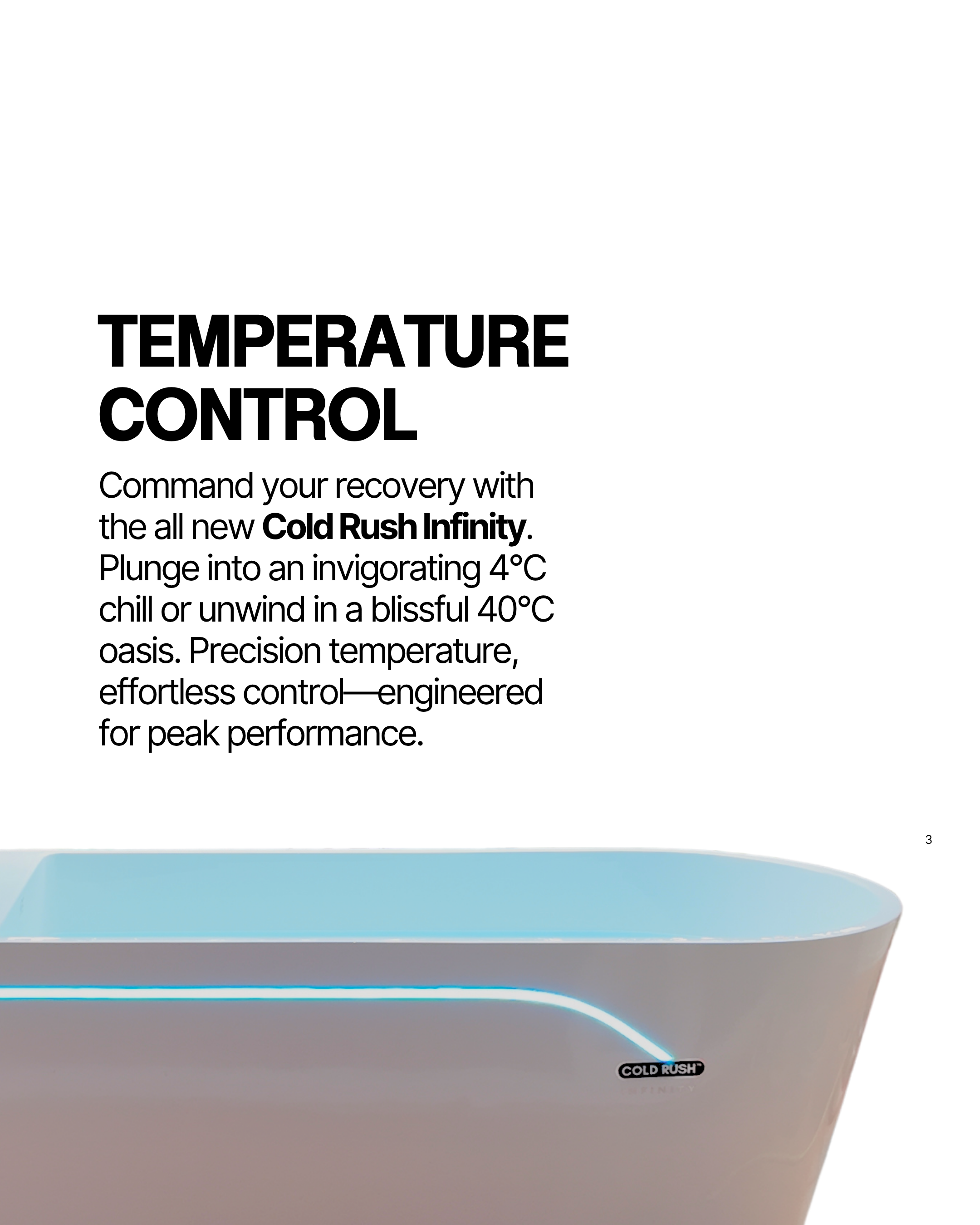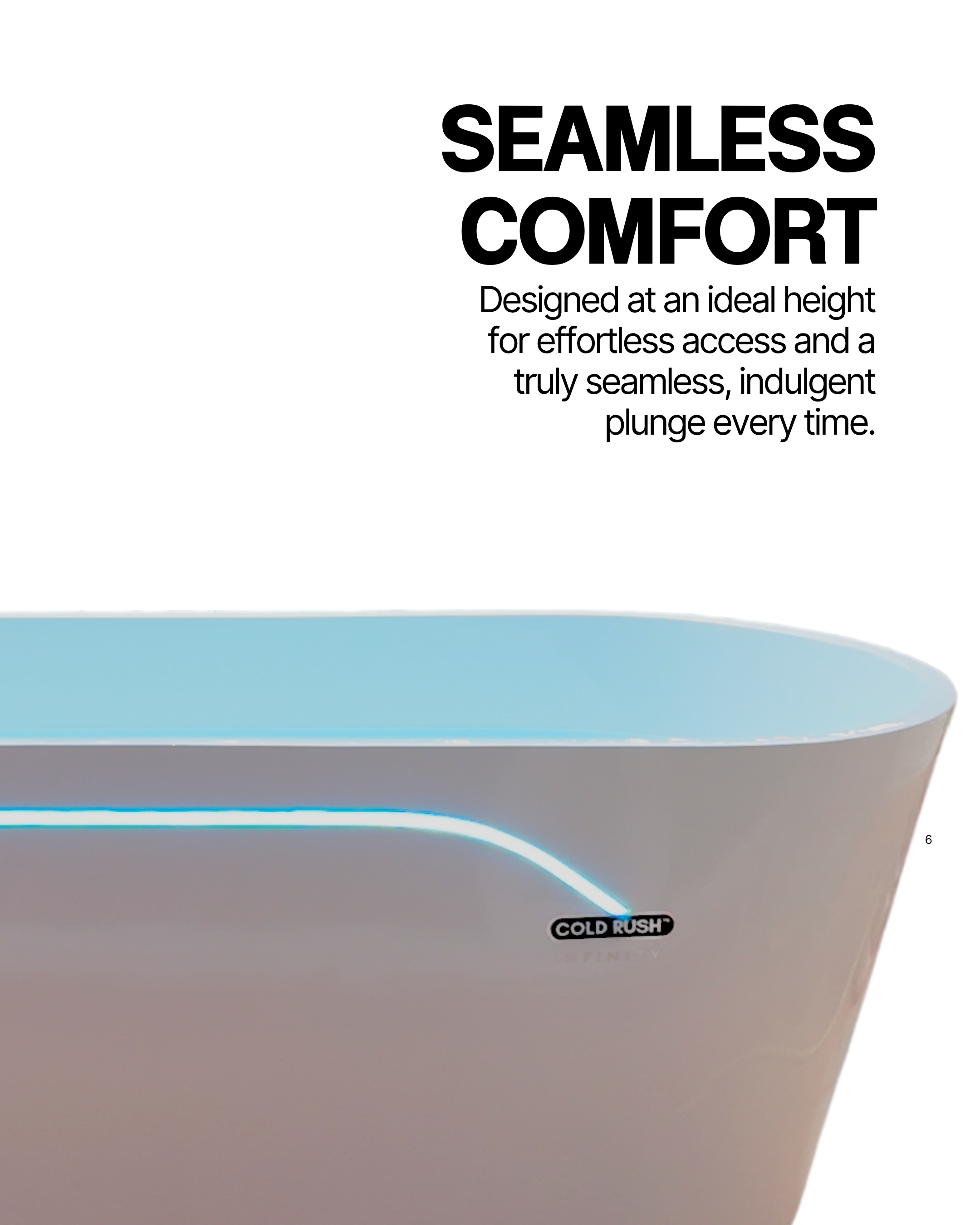 Welcome to a new era of recovery. Cold Rush Infinity isn’t just an ice bath, it’s your personal sanctuary for peak performance, precision, and indulgence. Designed for elite athletes, high achievers, and those who demand more from every moment, Infinity redefines what full-spectrum cold therapy should feel like.